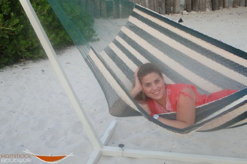 King Mayan Hammock-natural and Forest Green Striped Color Feature